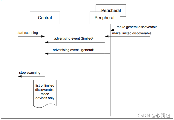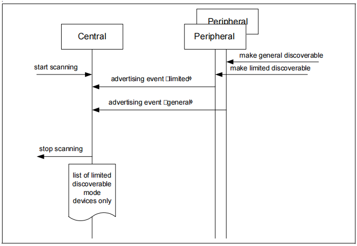 只有当已知要发现的设备使用有限的可发现模式时,才应该使用有限的发现过程。当希望发现所有设备时,应使用通用发现程序,无论它们是使用有限的可发现模式还是通用的可发现模式。