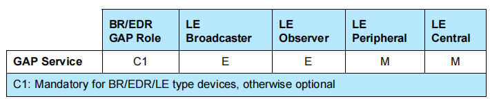 支持多个GAP角色的设备包含满足所支持角色的要求的所有特性。当设备在特性无效的角色中运行时,设备必须继续公开特性。