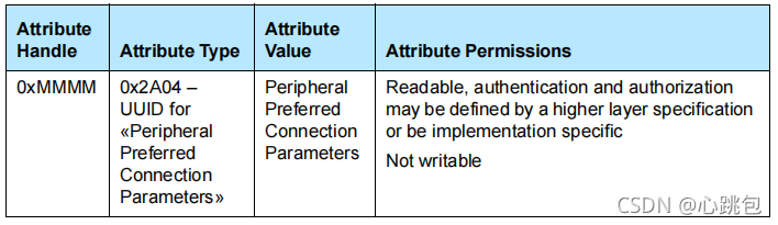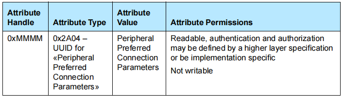 外围首选连接参数特征值应可读。身份验证和授权可以由更高的层规范定义或特定于实现。