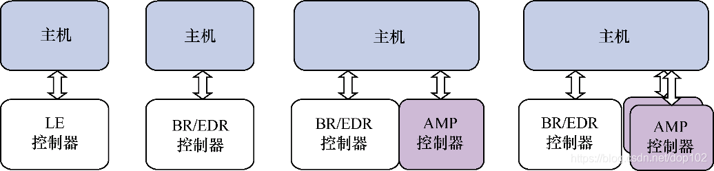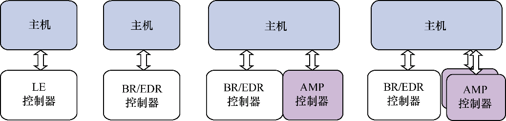 - 一个BR/EDR控制器,包括无线电、基带、链路管理器和可选的HCI。