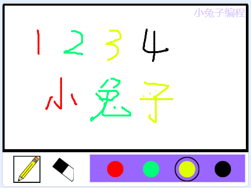 用鼠标控制画笔移动,按下鼠标键就落笔,松开鼠标键就抬笔,可以在白板的下方选择不同的绘制工具