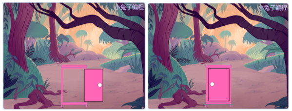 点击粉色门,舞台可以切换到指定3组背景汇总的一个