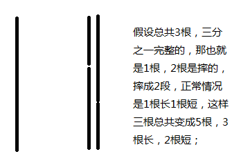 如果摔成2根一样长,那不少于原来整根一半的数量就更多了,所以最少的情况就是如上图所示,长的变成3总共是5,所以3/5,答案B