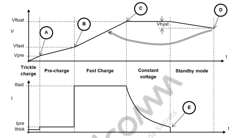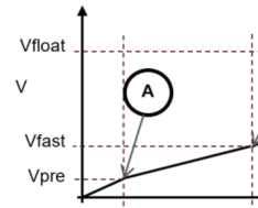 - 电池深度放电,电压低于Vpre阈值(A点)