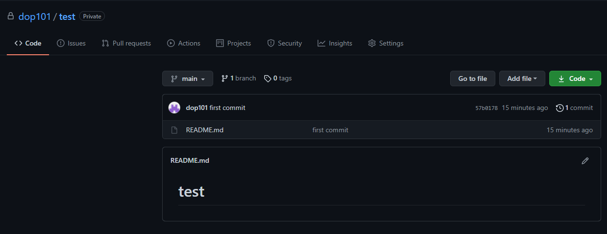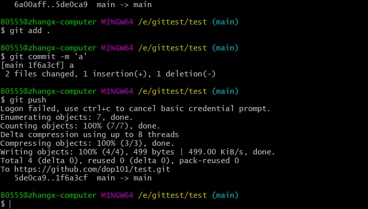 git commit -m "first commit" // 把添加的文件提交到版本库,并填写提交备注