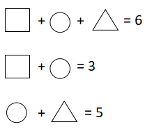 考点分析:考查数学逻辑推理,我们可以将第一个算式减去第二个算式得到的是三角形=6-3=3,同样将第一个算式减去第三个算式得到的是正方形=6-5=1;然后再把正方形1带入第2个算式:1+○=3,得到○=2,所以正确