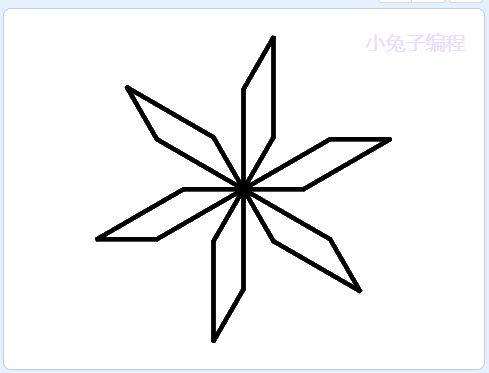 下图为六个平行四边形组成的花瓣,请仔细观察图形,编写程序利用循环语句绘制该花瓣图形(花瓣中心的原点不用绘制)