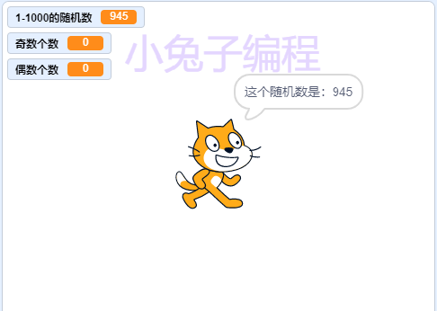 当绿旗被点击后,小猫角色说出一个1-1000之间的数字并保持2秒,文字要求如图1