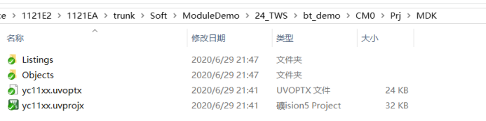 进入MDK文件夹,路径:ModuleDemo\24_TWS\bt_demo\CM0\Prj\MDK,打开keil工程,进行编译。