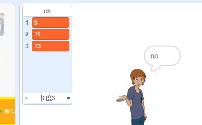 (2)比如,代码运行后,如果【 ch】列表中的数据为 1、2、3,小 明说“yes”。如果【ch】列表中的数据为 12、13、1,小明说“ no” 。