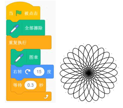 23. 在 scratch 画笔模块中,我们可以运用( )指令将一片花瓣变成一朵花。