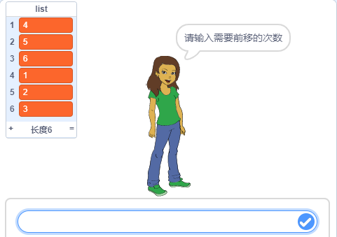 本案例难度系数4:综合考查变量及相关操作、询问机制(键盘交互)、循环结构、列表及相关操作等等;难点在于如果将前一项的值替换为后一项的值,以及如何控制列表总共需要移动多少次。实现方法有多种,小朋友们只要能实现效果就可以。
