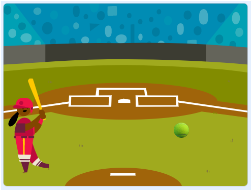 (2)按下空格键,Batter挥动球杆后,Tennis Ball向右移动,直到碰到舞台边缘后消失;