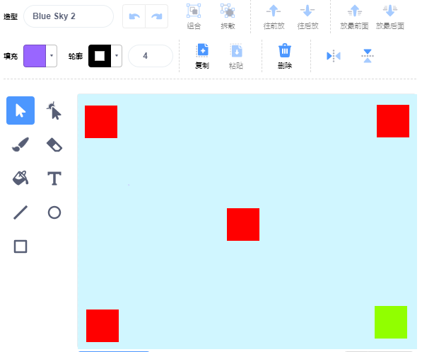 (2)绘制如图红色和绿色正方形颜色块,放在如图所示的大致位置;