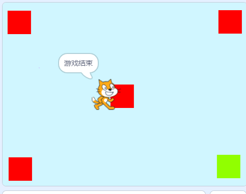 (3)当小猫碰到红色时喊出”游戏结束“,并回到初始位置;