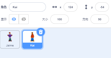 删除默认的小猫角色,并从角色库中添加Jaime、Kai到角色列表中,如下图所示:
