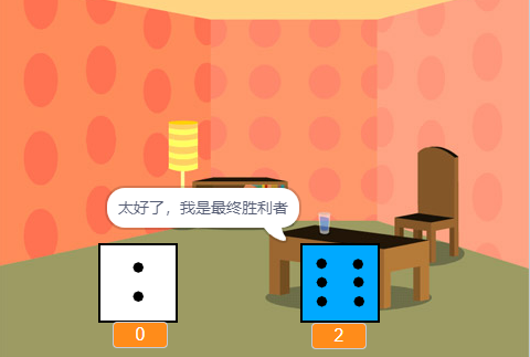 游戏为三局两胜制,即有一方先得到2分,比赛结束,胜利的一方要说出“太好了,我是最终胜利者!”,此时按下空格键骰子不再有反应