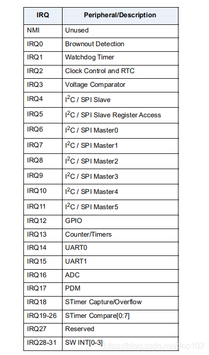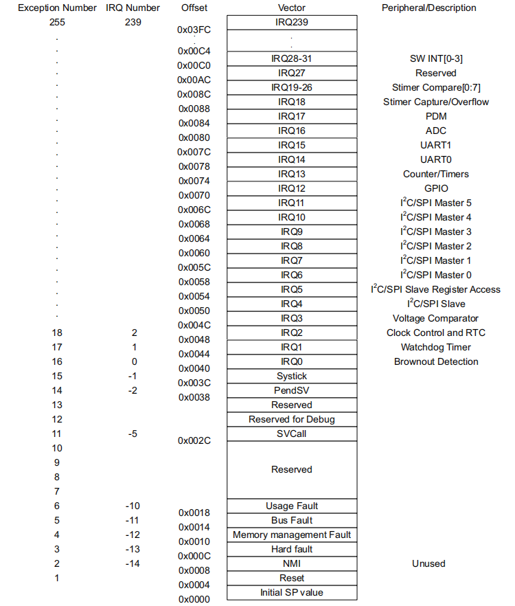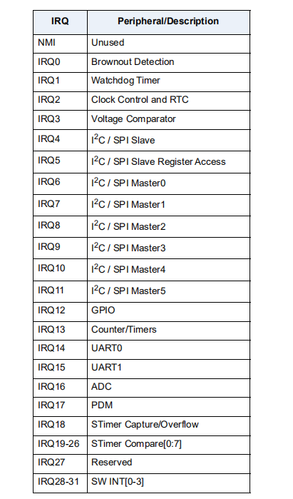Cortex-M4允许用户根据应用程序的要求将各种中断分配到不同的优先级级别。在apollo2 mcu实现中,有8种不同的优先级。