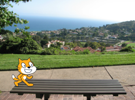 1)点击绿旗,小猫从长椅左侧位置出发,在长椅上来回行走。