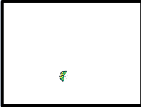 程序说明:舞台上有黑色边框,蝴蝶自动向前运动时,如果触碰到黑色边框,就会发出声音,并且转向。蝴蝶永远都飞不出黑色边框。(边框自己绘制)