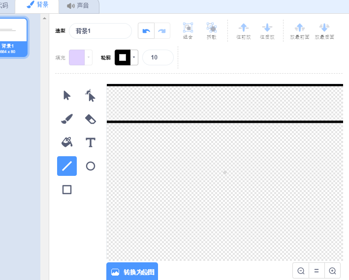 - 默认的是空白的舞台背景,我们可以自己在这个背景上或者新建一个背景绘制我们的跑到、起点和终点