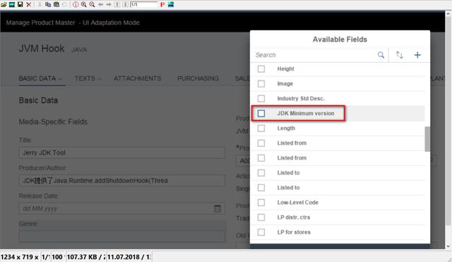 点右键,从“Available Fields”的列表里选择我之前创建的扩展字段“JDK Minimum version”: