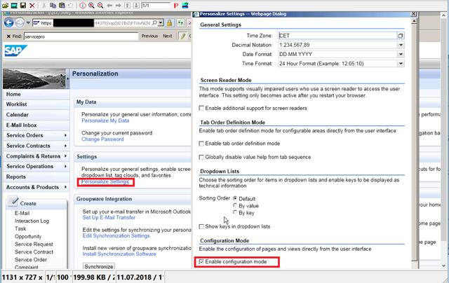 我们使用所谓的Application Enhancement Tool(AET)来创建扩展字段。首先在Personalize里将Configuration模式打开,这样才能够直接在浏览器里创建扩展字段。