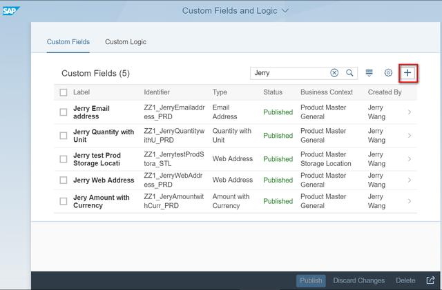 同SAP CRM和SAP C4C直接在想添加扩展字段的UI上进行字段创建不同,S/4HANA采取的方式是首先统一创建扩展字段,然后用户再决定将这些字段放到哪些UI上去。