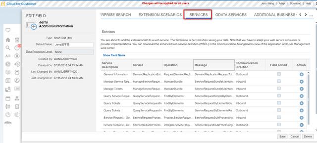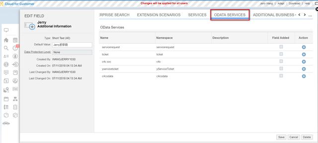 扩展字段也能自动加到SAP标准的Web Service和OData service上: