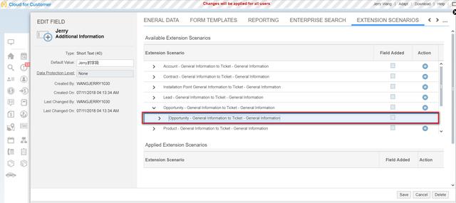 以上图的extension scenario为例:意思就是如果一个Opportunity上的扩展字段值为A,那么这个Opportunity生成的后续文档Service Request,其同名扩展字段的值也为A。