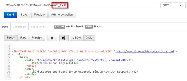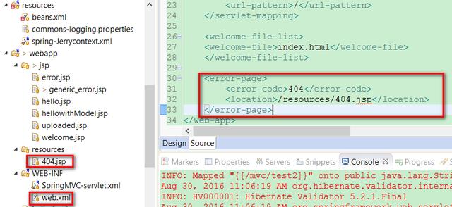 意思是一旦有404错误发生时,显示resouces文件夹下的404.jsp页面。