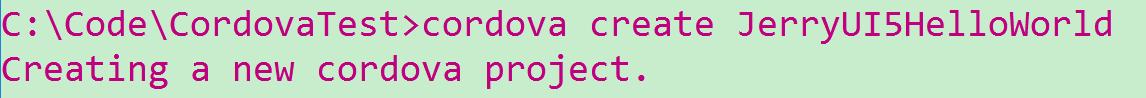 3. 创建一个新的文件夹,然后进入该文件夹,创建一个新的Cordova项目。命令行: