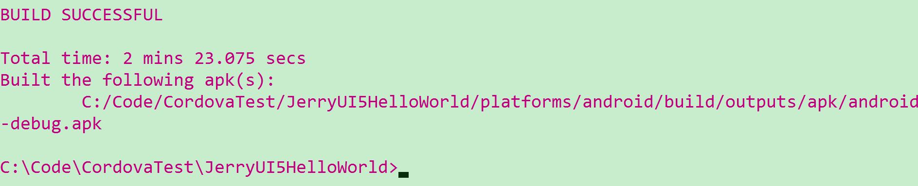 一切就绪了。现在使用命令行cordova compile进行打包,安卓应用的APK文件就生成在文件夹platforms/android/build/output/apk里了。