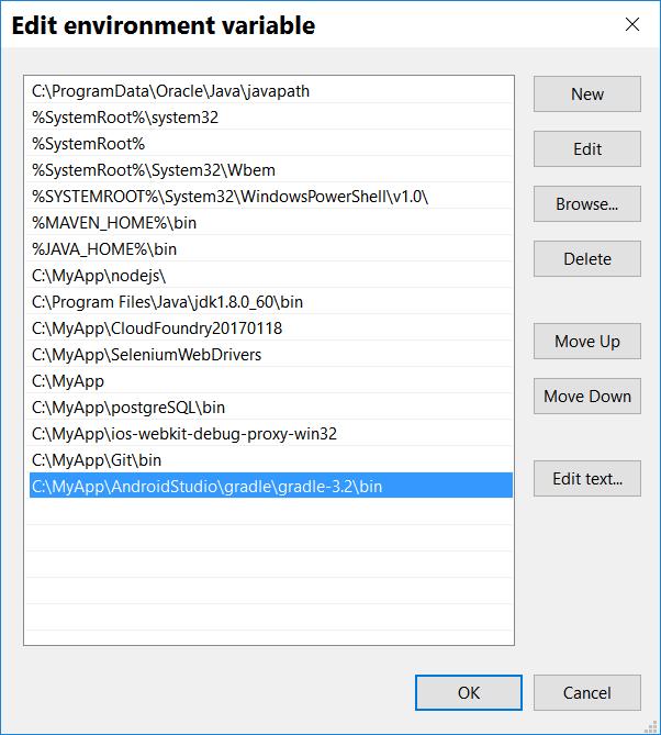 我没有选择安装庞大的Android Studio,而是下载了gradle的二进制版本,将其加入到Path环境变量中即可。