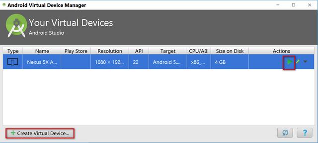 在Android Virtual Device Manager里创建一个新的虚拟设备: