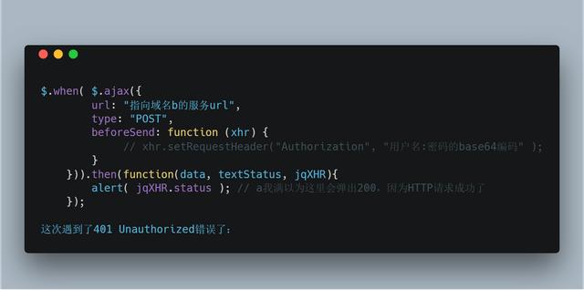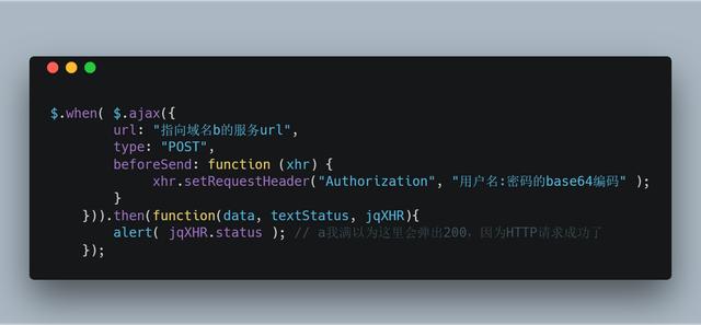 场景是我需要在部署在域名a的Web应用里用JavaScript去消费一个部署在域名b的服务器上的服务。域名b上的服务也是我开发的,因此我将域名a加到了该服务的HTTP响应结构的头文件里,这样就允许了域名a上的JavaScript代码用AJAX访问域名b的服务。