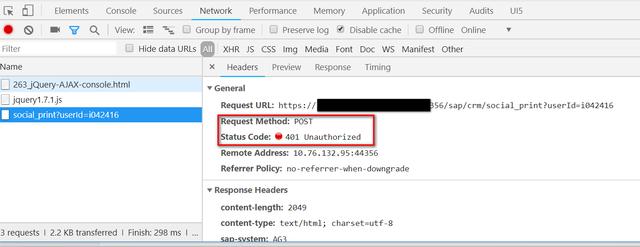 观察Chrome开发者工具,发现其实域名b的服务已经成功执行了,确实返回了200的Status code,
