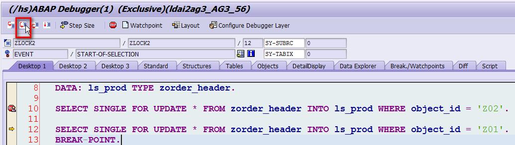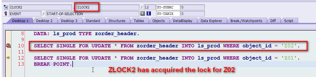 SELECT SINGLE FOR UPDATE * FROM zorder_header INTO ls_prod WHERE object_id = 'Z02'.