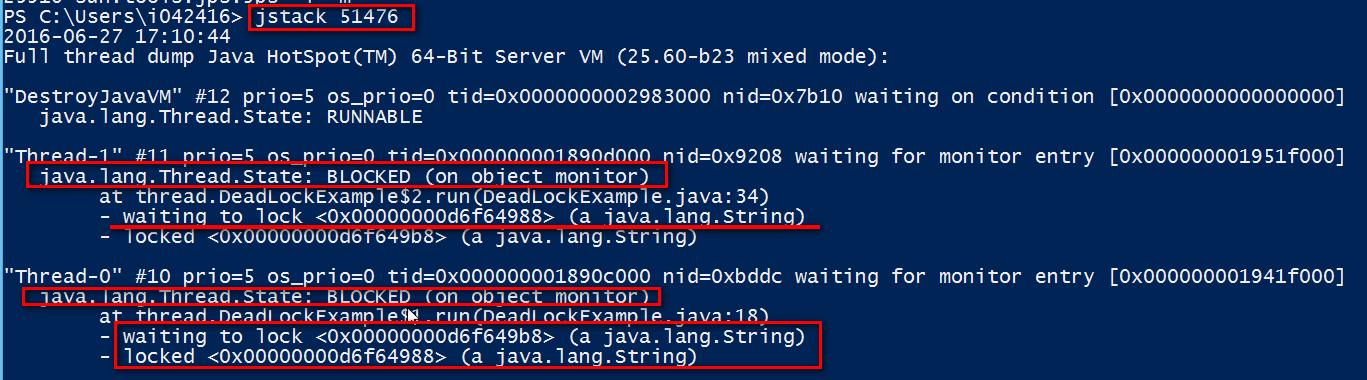 使用JDK自带的工具jstack找出造成运行程序死锁的原因