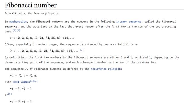 F(0)=1,F(1)=1, F(n)=F(n-1)+F(n-2)