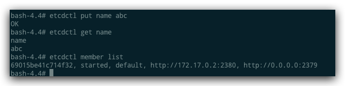 docker run --name etcd01 -d -p 2379:2379 -p 2380:2380 appcelerator/etcd --listen-client-urls http://0.0.0.0:2379 --advertise-client-urls http://0.0.0.0:2379