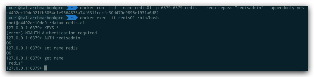 docker run -itd --name redis01 -p 6379:6379 --requirepass "redisadmin" redis