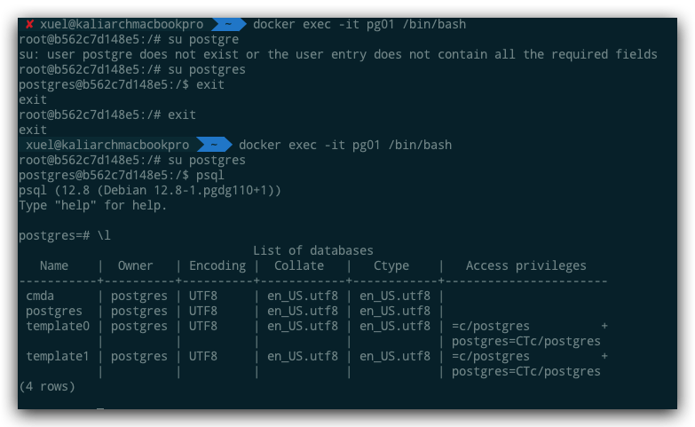 docker run --name pg01 -e POSTGRES_PASSWORD=pgadmin -p 54320:5432 -d postgres:12