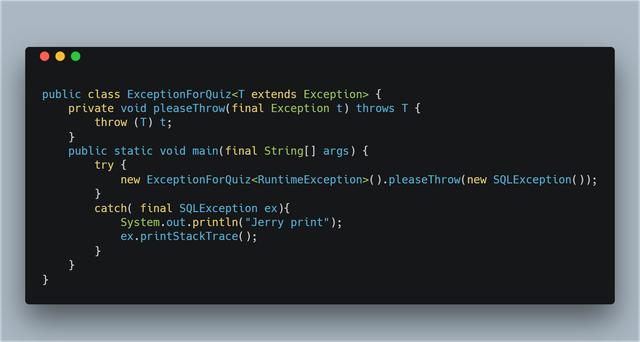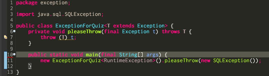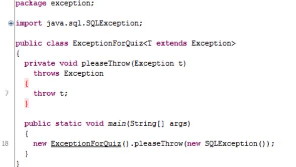 new ExceptionForQuiz<RuntimeException>().pleaseThrow(new SQLException());