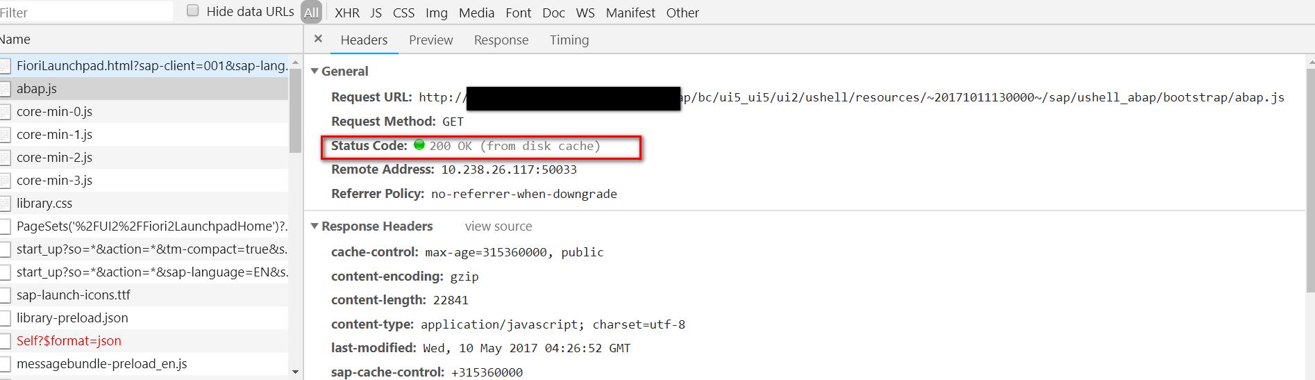 这总情况能在Chrome开发者工具的Network标签页里看到from disk cache的提示: