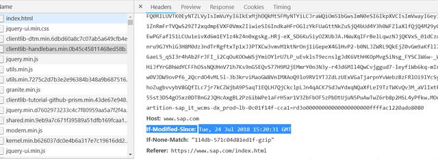 浏览器会在下次请求的时候,把Last-Modified的值作为Request Header的If-Modified-Since字段带上。如果浏览器缓存的文件已经超过了Cache-Control(或者Expires),那么需要加载这个文件时,就会发出请求,请求的Header有一个字段为If-Modified-Since,如下图所示: