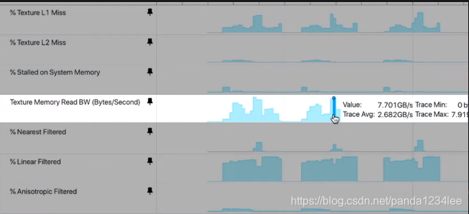 为了确保传输给 GPU 的纹理数据不会超过一定的带宽限制,它的均值就不宜超过 1GB/s, 峰值不宜超过 6GB/s,显然它的数据已经超出了预期的带宽范围(blow up the bugdet)