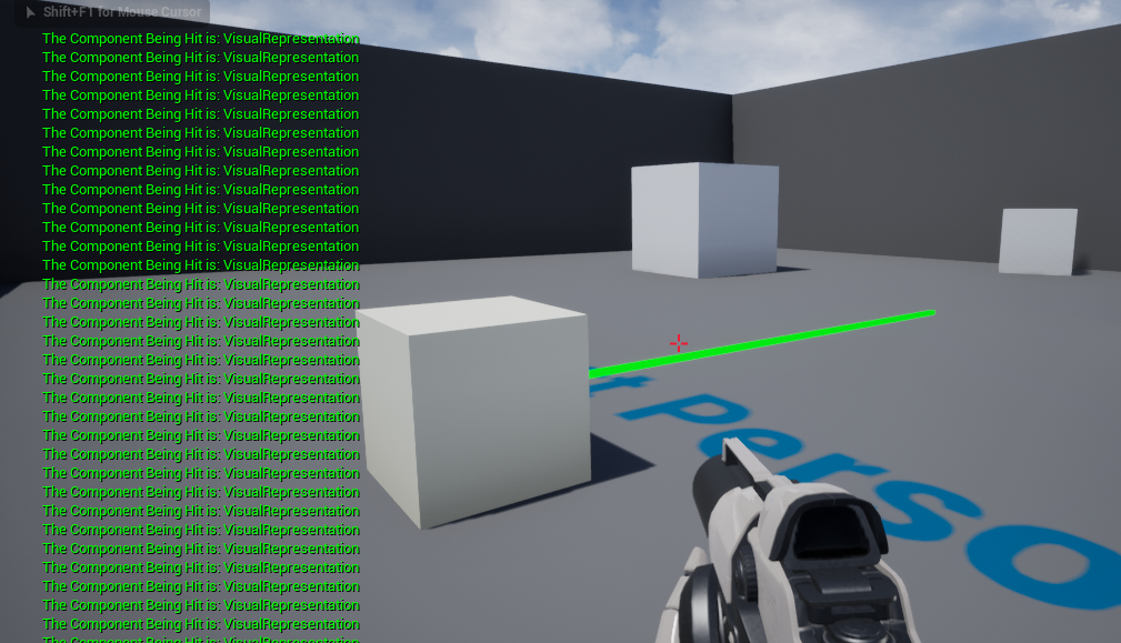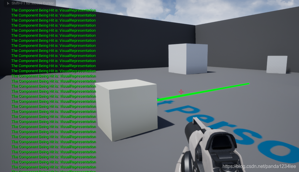 在开发时,我们希望看到我们的线轨迹。通过上面的变量,我们将使用 DrawDebugLine 函数来画一条绿色的线。如果线轨迹接触到我们这个 actor 中的任何组件,将向屏幕打印一条消息。