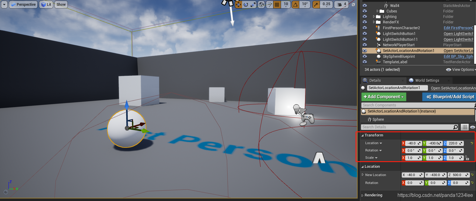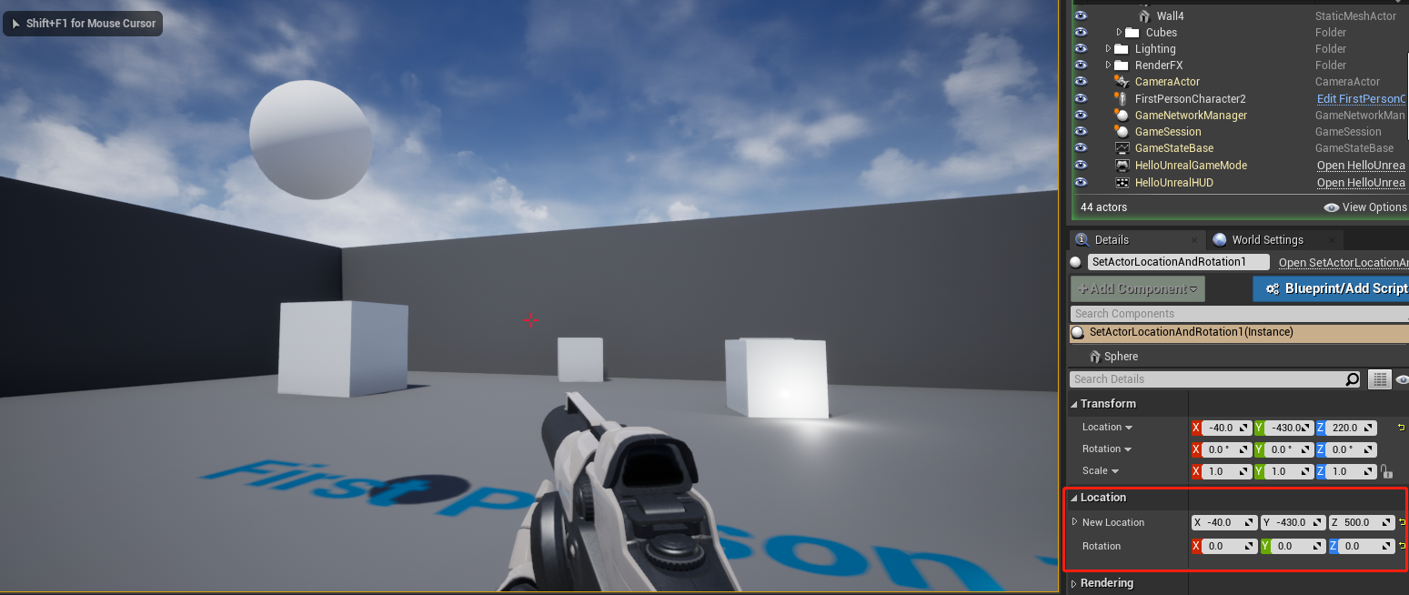 在这个例子中,我们将在 BeginPlay 函数中调用 SetActorLocationAndRotation 函数。要了解更多关于 SetActorLocationAndRotation 函数的信息,请点击这里。