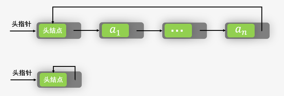 为了解决这个问题,我们只需要将单链表的尾结点的指针由空指针改为指向头结点的指针,问题就结了。